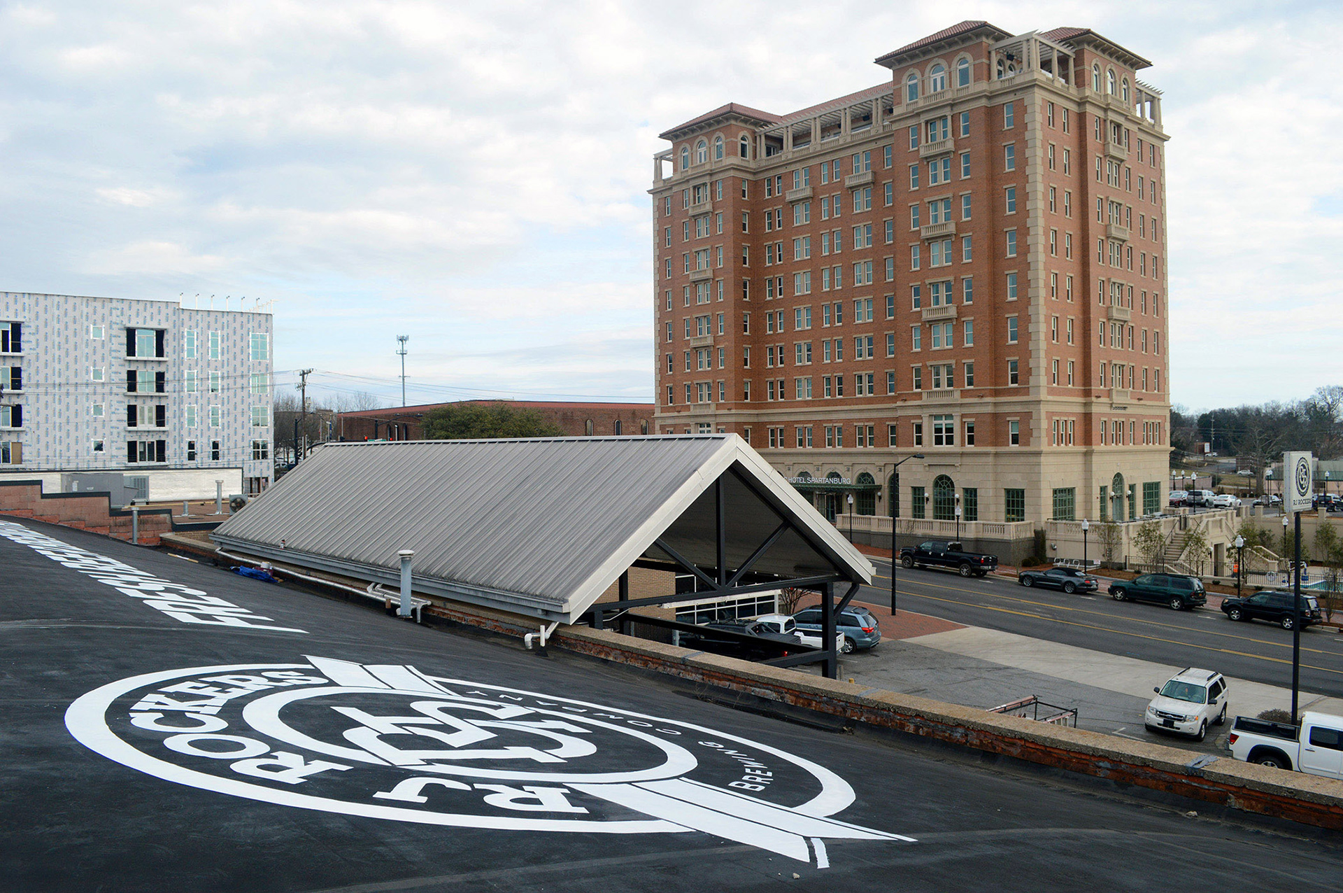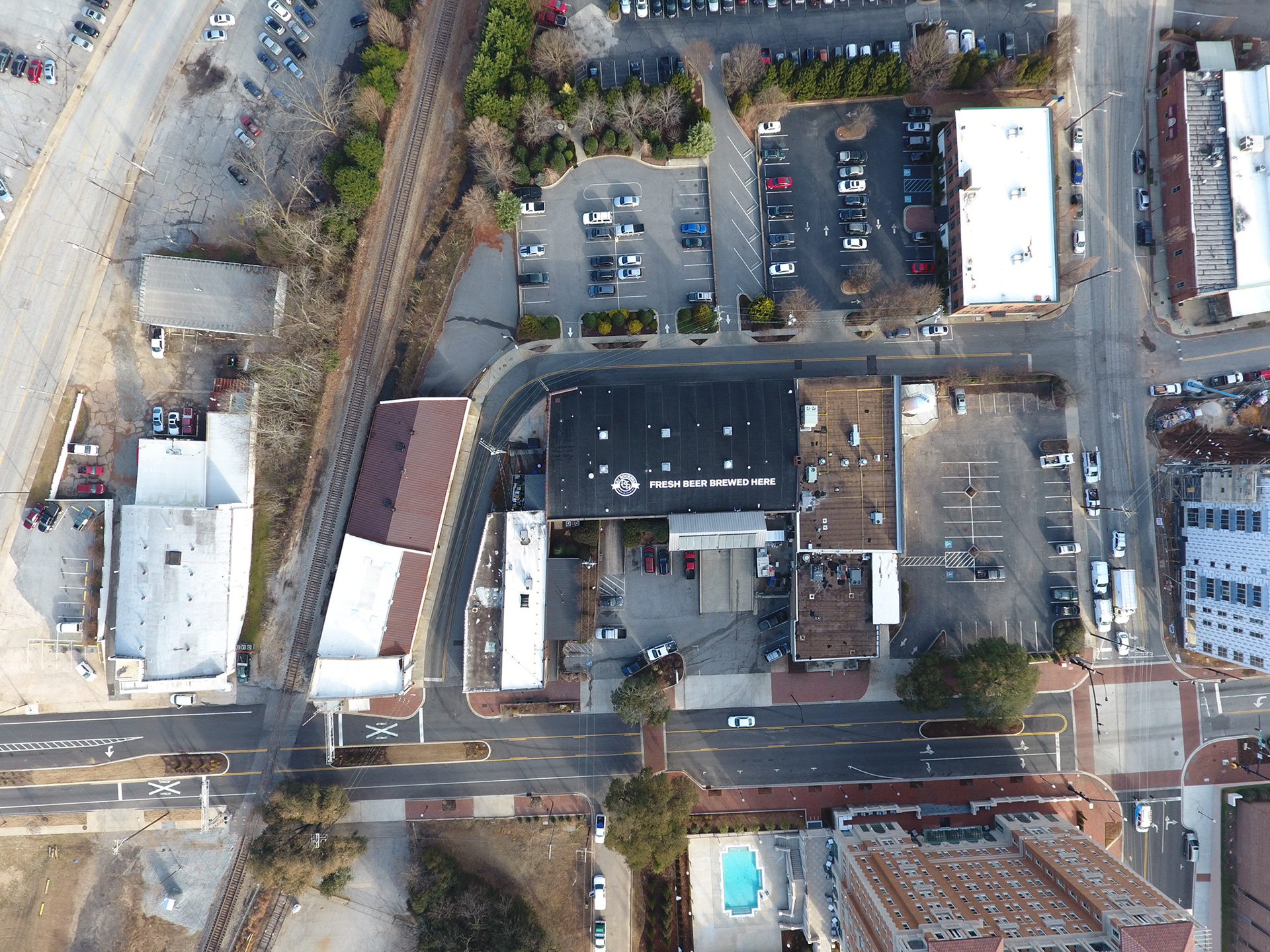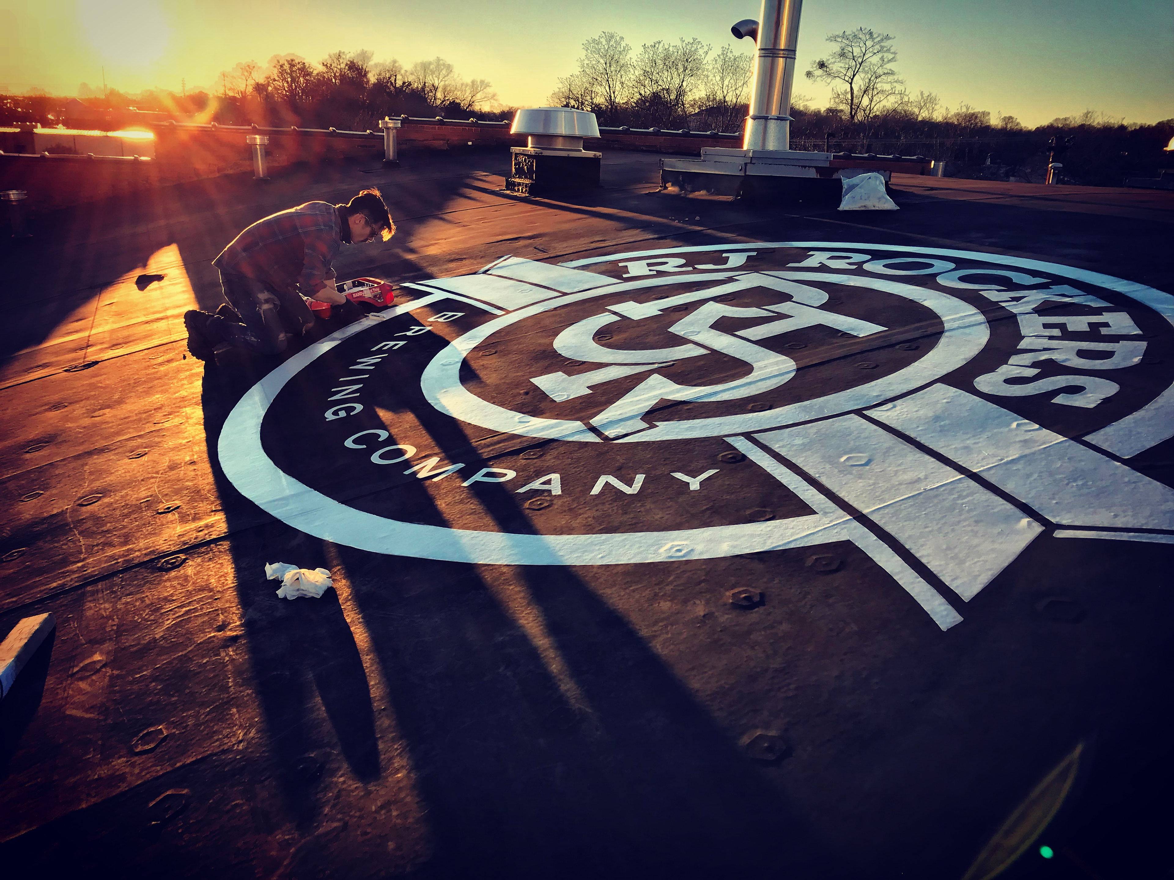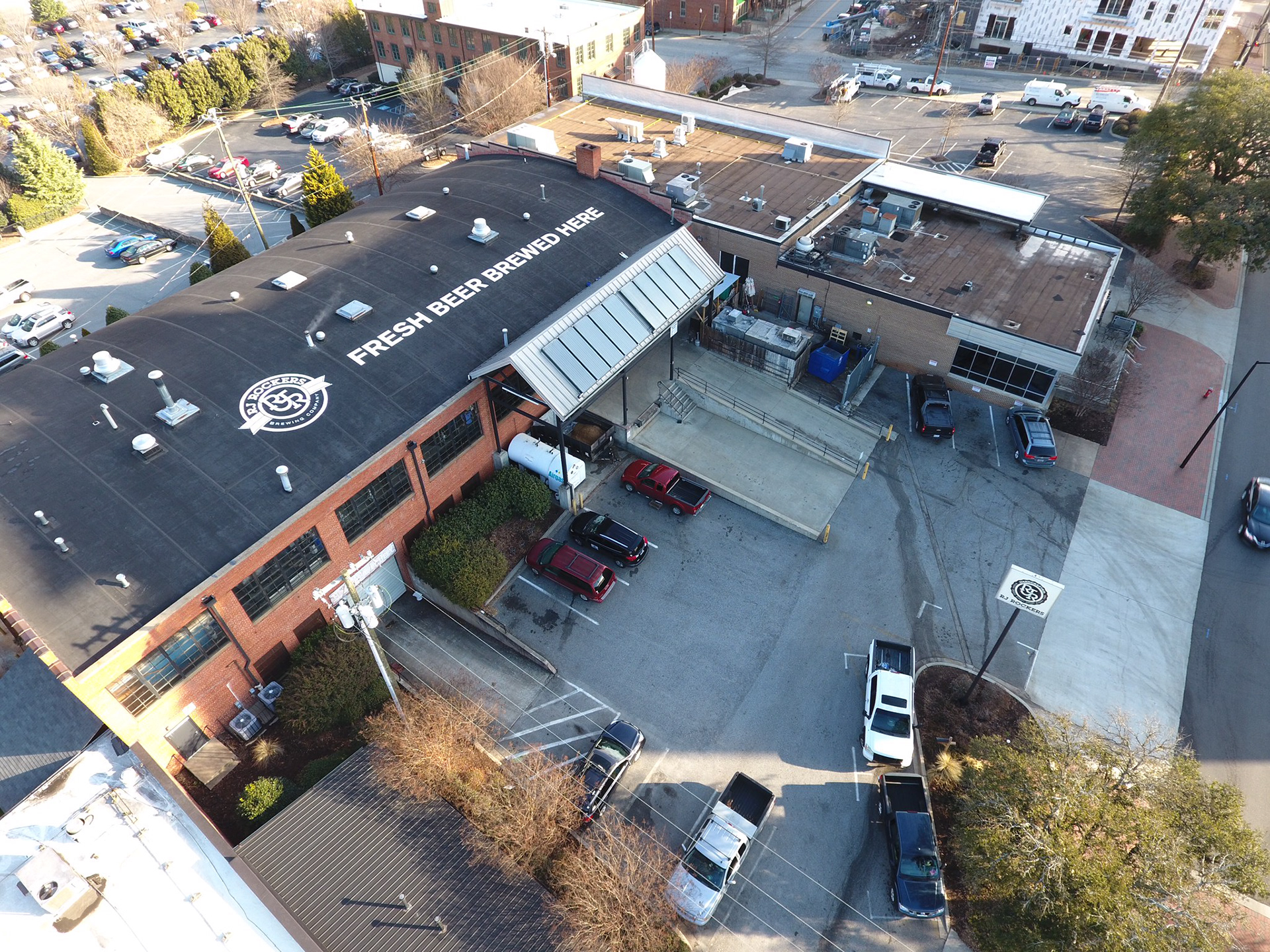 RJ Rockers Brewing company commissioned Bannan Blasko to execute this bold graphic designed by Launch Something. Viewable to guests at the newly constructed AC Hotel by Marriott Spartanburg across the street. The crisp text proudly announces to patrons and guest: “FRESH BEER BREWED HERE.” PHOTO/VIDEO CREDIT: Gabe Porter