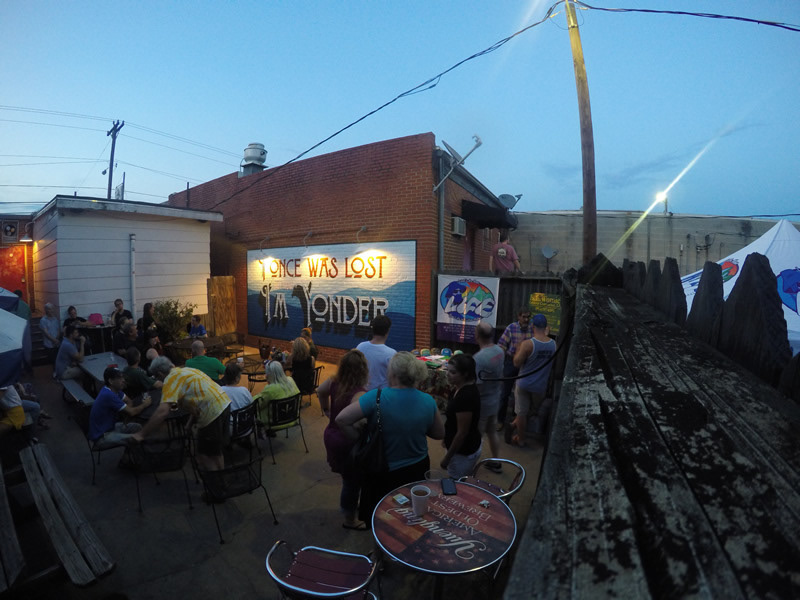 Simply titled Yonder, this is a text-based mural created for the award-winning Nu-Way Restaurant & Lounge in Spartanburg, SC. While developing designs for the mural, we were interested in the powerful tool of storytelling and the mythical nature of narrative found throughout both historical and contemporary southern culture. Working with lyrics from the classic Christian hymnal, Amazing Grace, and a playful example of southern vernacular, we fused these two together to create an original phrase that promotes a lighthearted atmosphere on the outdoor patio of this restaurant and lounge. This program is funded in part by The Arts Partnership of Greater Spartanburg, its donors, the County and City of Spartanburg and the South Carolina Arts Commission which receives support from the National Endowment for the Arts and the John and Susan Bennett Memorial Arts Fund of the Coastal Community Foundation of SC, The Valet, Livin' Life Man, and the Nu-Way Restaurant and Lounge. We worked closely side by side with local artist Aimee Wise throughout the design and execution of this project.